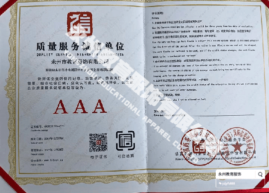 永州市教育服饰始终坚持“质量第一、服务第一、信誉第一”为原则,全身心的服务客户。